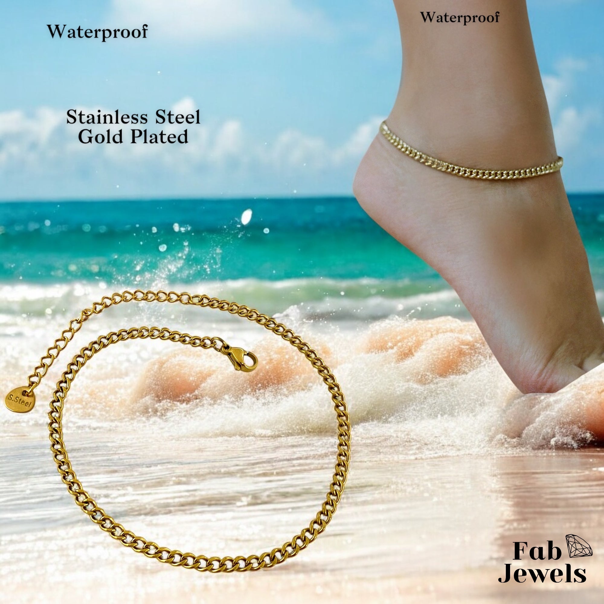 Stainless Steel 316L Anklet Curb Chain, available in Yellow Gold and Silver.