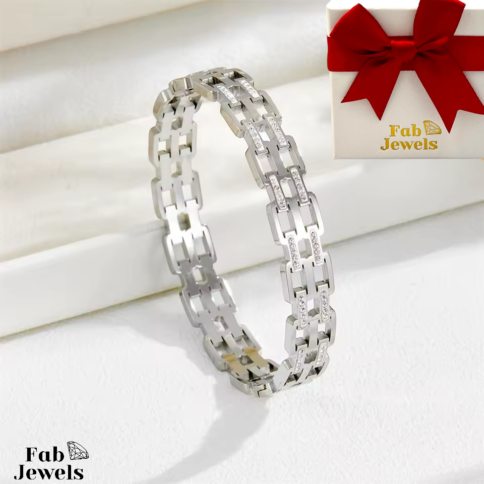 Highest Quality Stainless Steel 316L Bangle, nicely detailed with Cubic Zirconia.