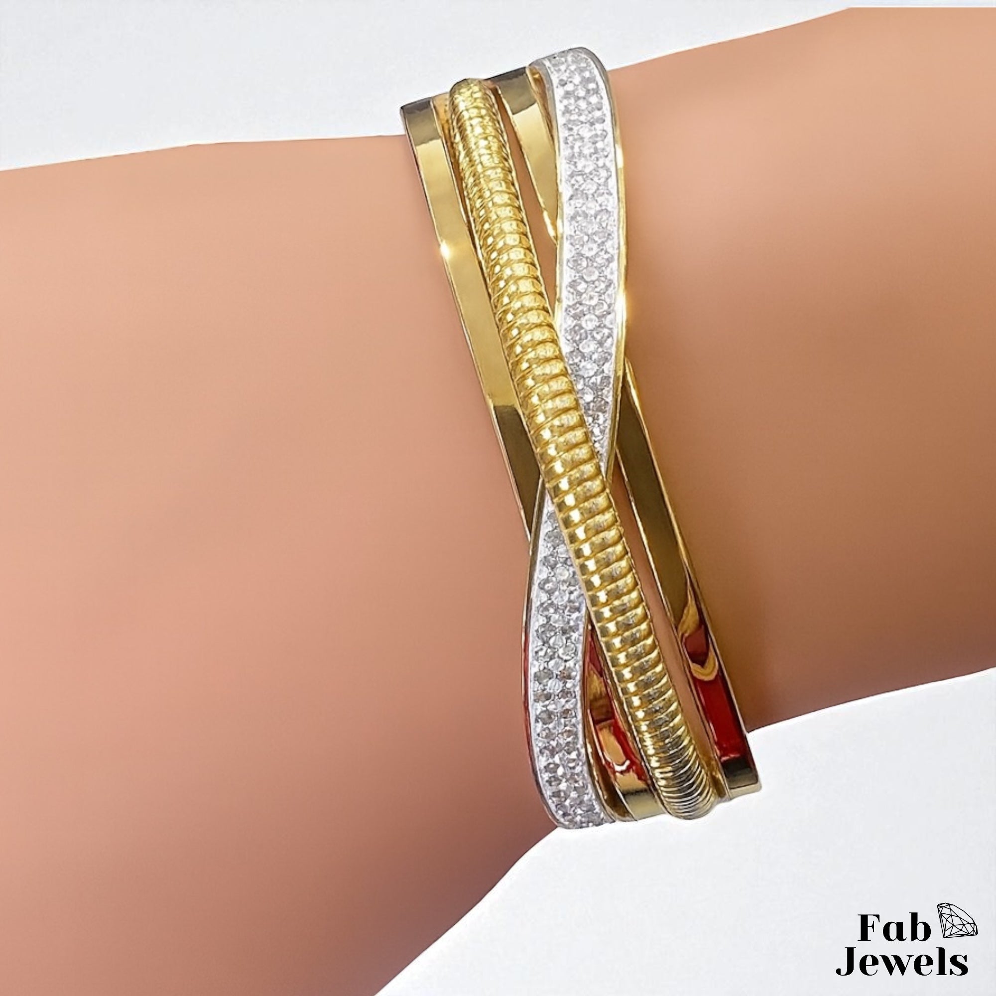 18ct Gold Plated on Stainless Steel 316L Bangle. Nicely detailed with sparkling cubic zirconias.
